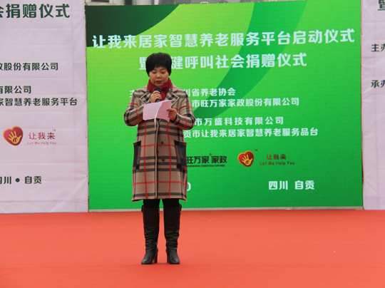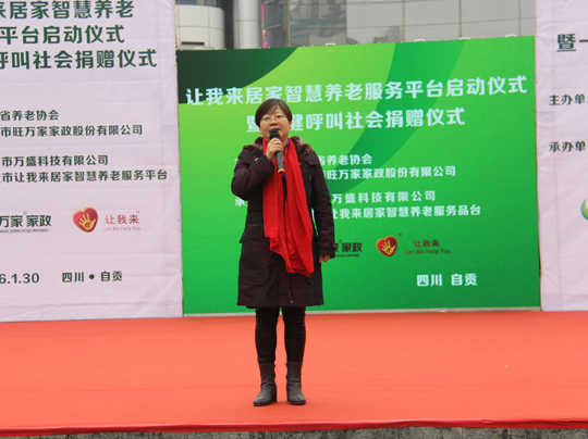 自贡市旺万家家政股份有限公司董事长漆成秀女士致辞表示“互联网+家政+养老”是大势所趋,我们和北京杰佳通深入合作共同搭建目前国内最先进的智慧养老平台,以智慧服务平台融合传统的产品交易、家政保姆、老年护理、专业培训等,不仅符合政策指导方向,同时也能满足市场需求。针对老人们普遍希望居家养老的需求,“让我来”发挥社区居家养老服务中心一对多的优势,通过智慧平台切实解决好老人的照料问题,妥善安排好他们的晚年生活,构建起养老保障的社会支持网络系统,使老龄人能够安度晚年。
