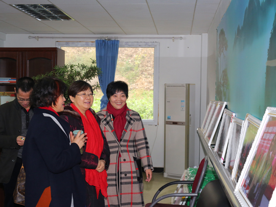 旺万家公司董事长漆成秀女士(右一)陪同省养老协会刘鸣会长(中)一行三人参观公司总部