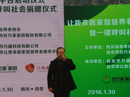 启动仪式活动现场自贡市旺万家家政股份有限公司董事长漆成秀和自贡市旺万家家政股份有限公司总经理何磊向东湖社区、悦景社区赠送让我来智能呼叫器各100个。悦景社区倪书记并进行了发表感言提到,感谢自贡市旺万家家政股份有限公司长期以来对社区的关怀与帮助,对社区文化建设的支持,择优引进社会力量,不断丰富服务内容和提高服务质量,为我市老年群众提供省心、安心、舒心的良好养老环境。