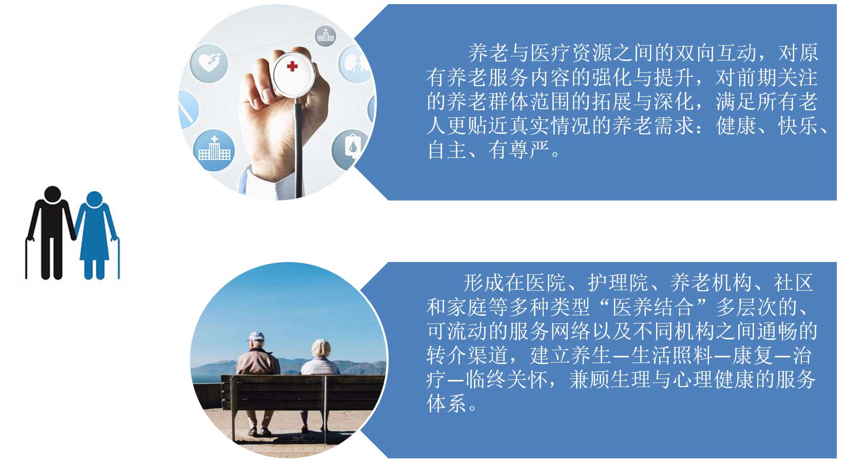 该模式将医疗与养老资源融为一体,形成以医促养、以养助医的运营态势,能基本实现非危急重病老年人在机构内医养共享。